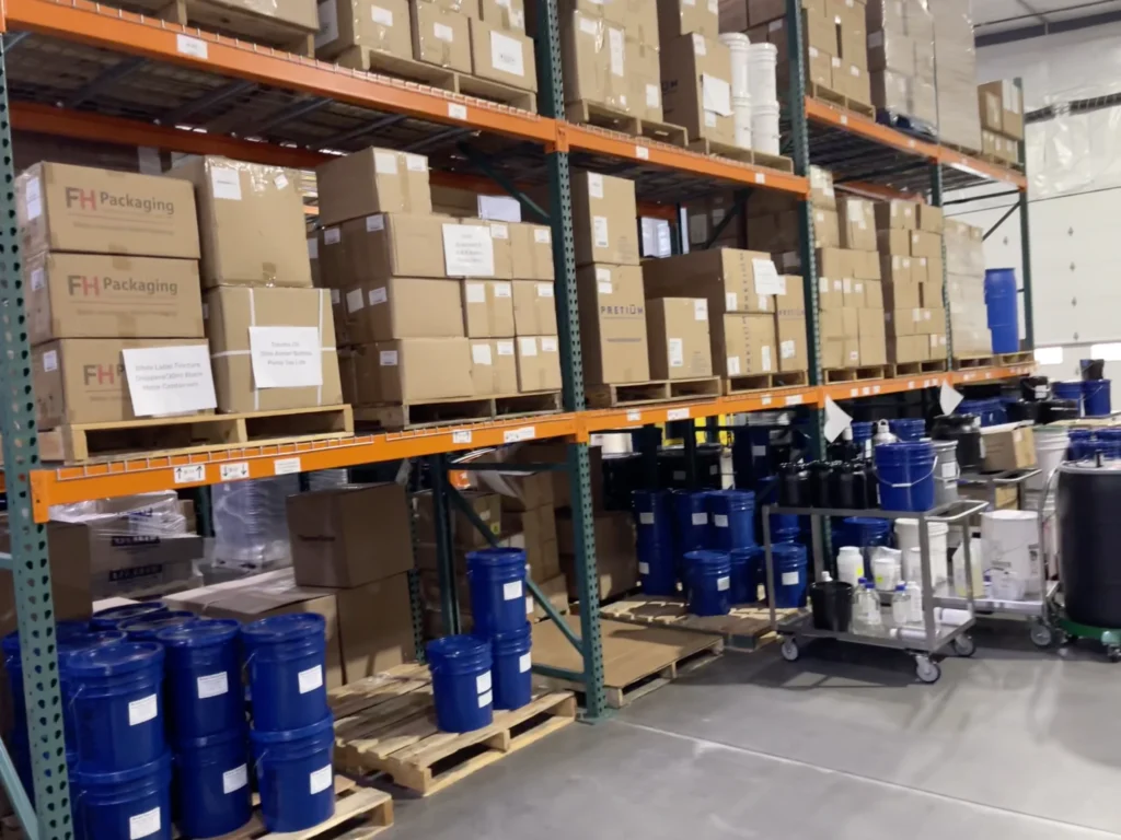 倉庫には、原料化される前のクルードオイルやHTE(高テルペン抽出物)などが保管されていました。